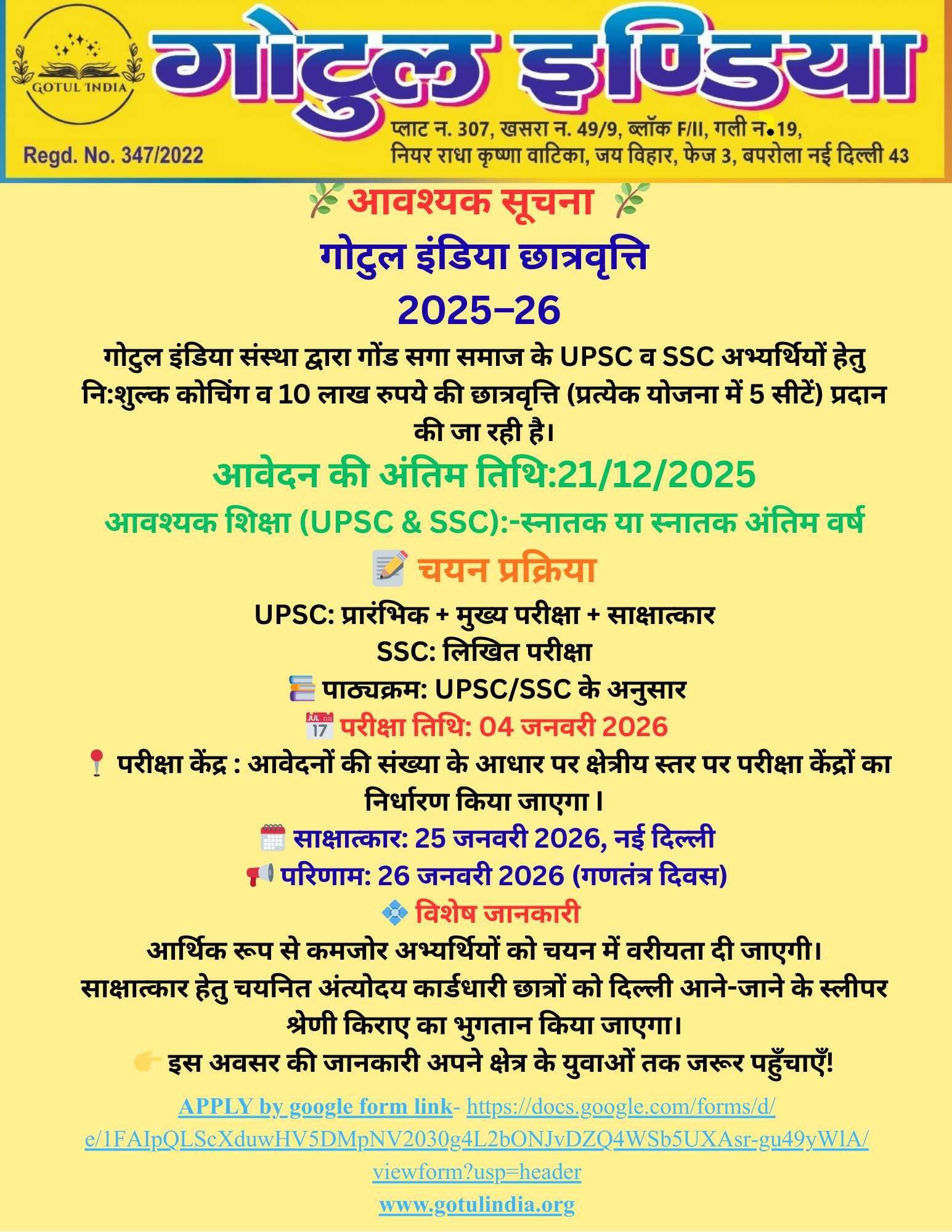 GOTUL INDIA SCHOLARSHIPS EXAM 2025