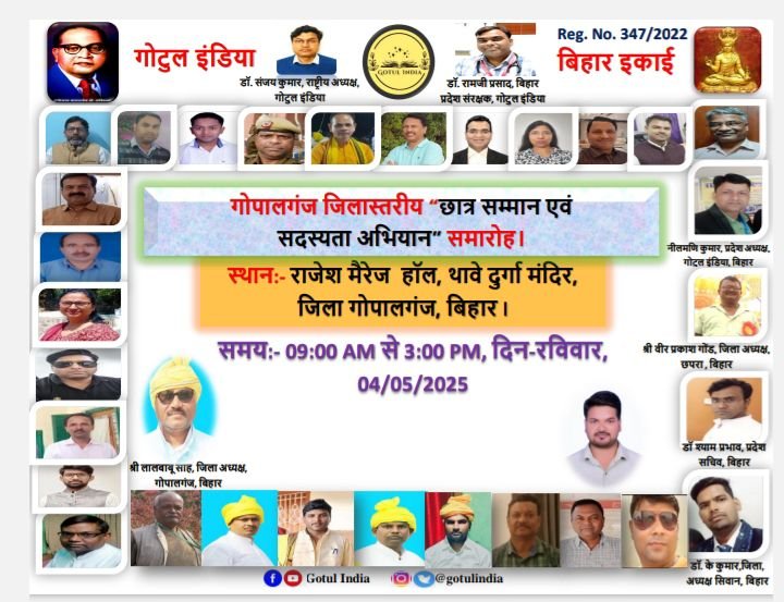 4 मई 2025,गोटुल इंडिया, जिला इकाई ,गोपालगंज के तत्वाधान में आयोजित कार्यक्रम