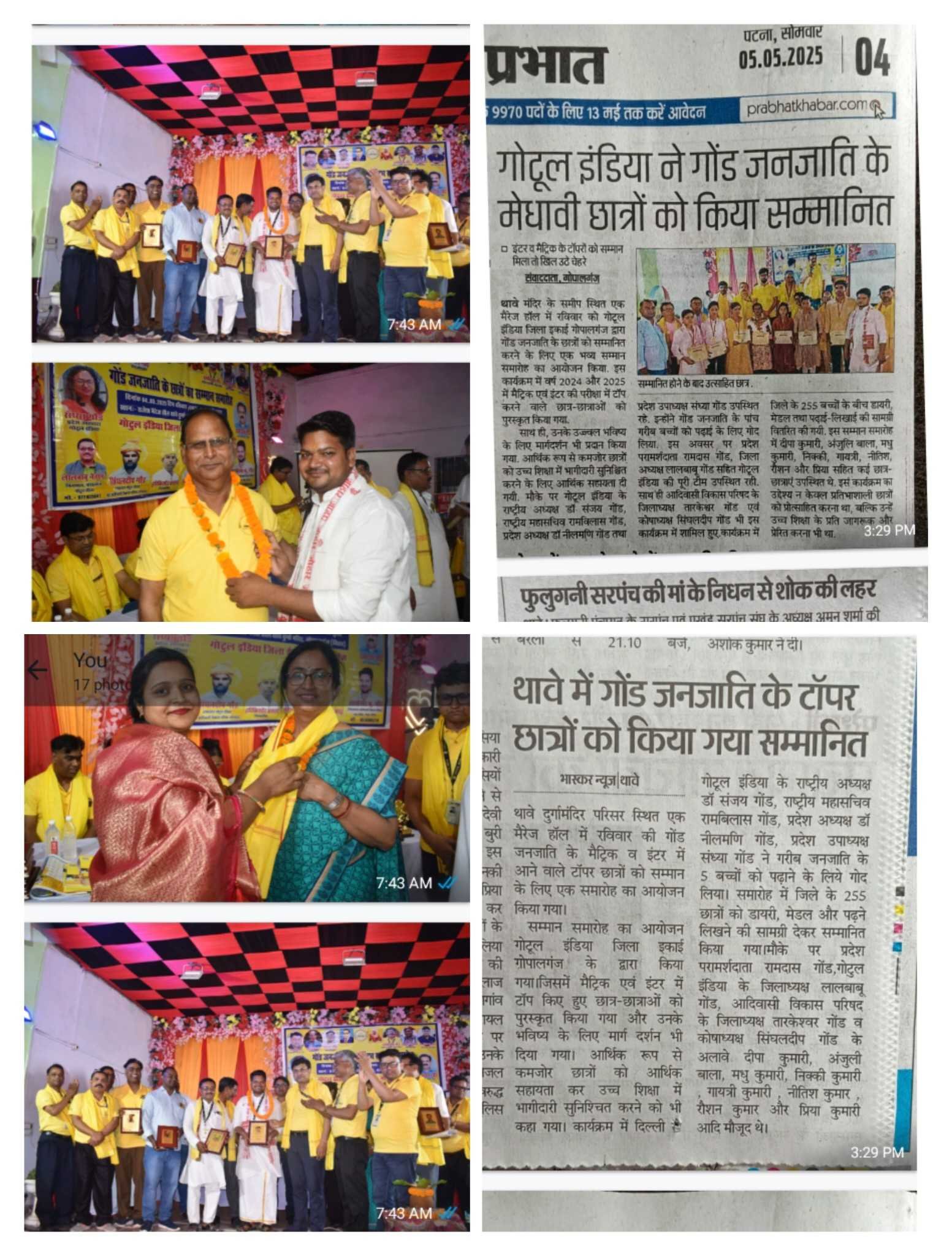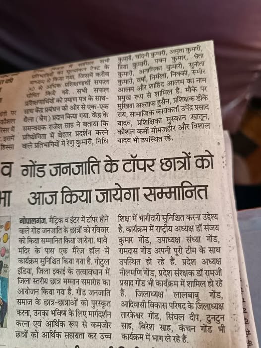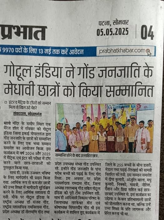 4 मई 2025 रोज रविवार को गोटुल इंडिया, जिला इकाई ,गोपालगंज के तत्वाधान में आयोजित कार्यक्रम "छात्र सम्मान एवं सदस्यता अभियान" के सफल आयोजन