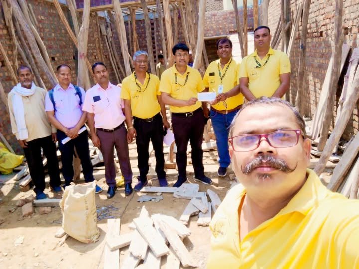 श्री शिव कुमार गोंड जी के साथ अन्य सदस्य गण, गोटुल इंडिया के अधिकारी तन मन धन से भवन निर्माण में लगे हुए l