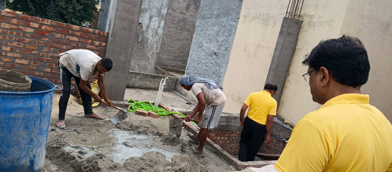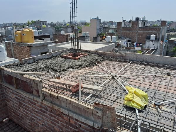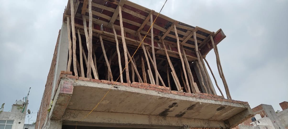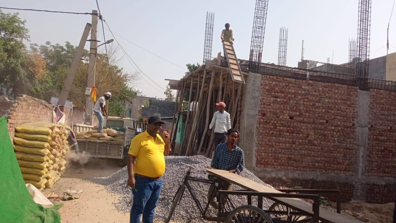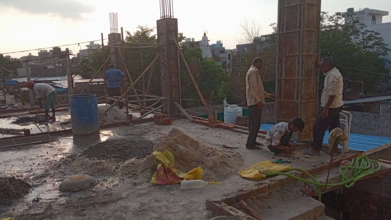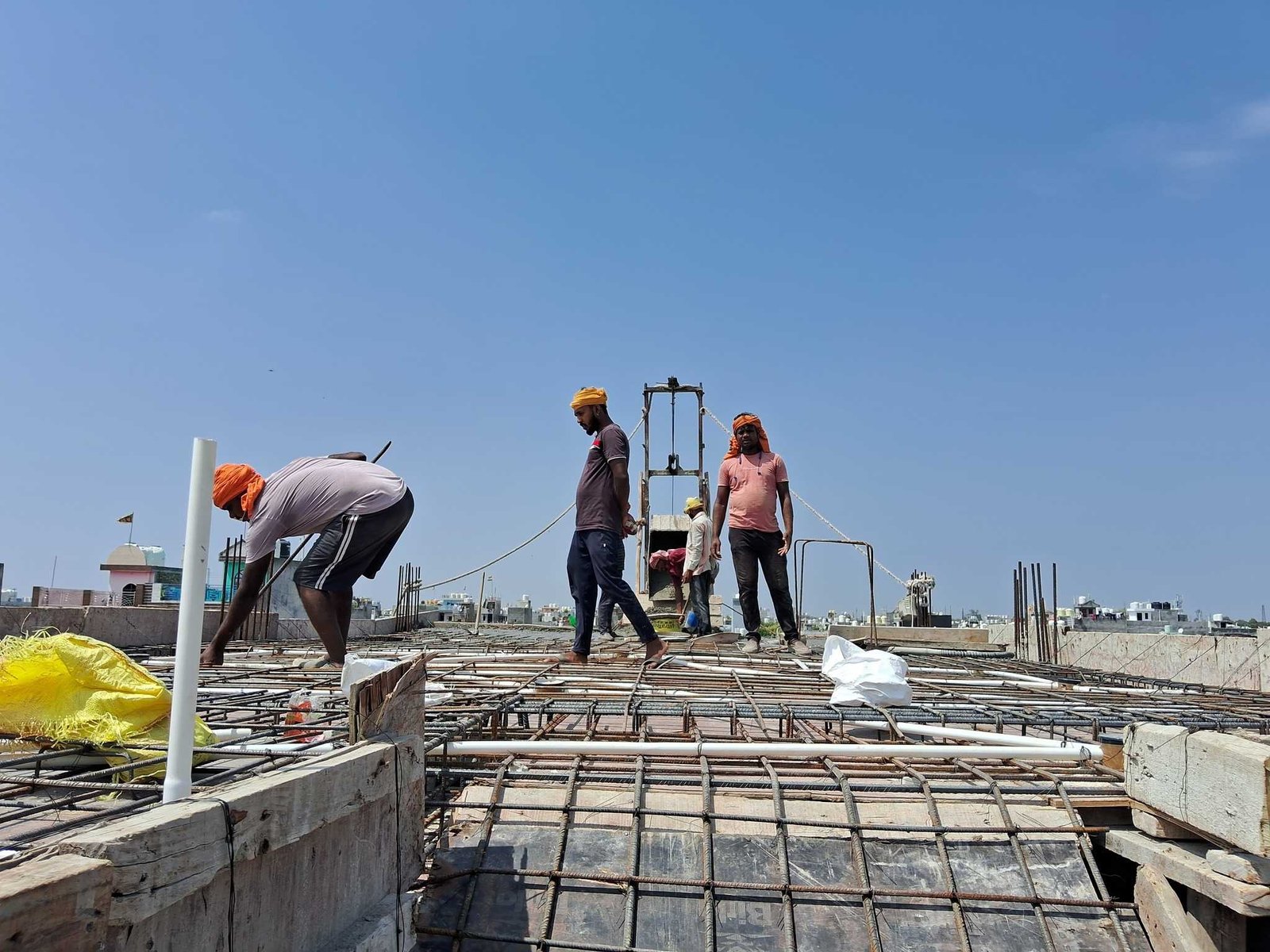 दूसरी मंजिल लिंटर (छत) का ढलाई का काम हो गया